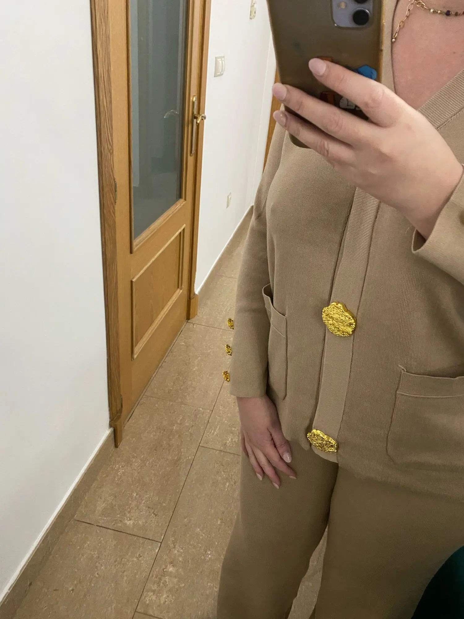 Les finitions soignées témoignent d’un véritable souci du détail, notamment au niveau des manches et de la fermeture. Cet ensemble s’adapte aussi bien aux journées de travail qu’aux sorties plus habillées, offrant une polyvalence appréciable dans toute garde-robe.